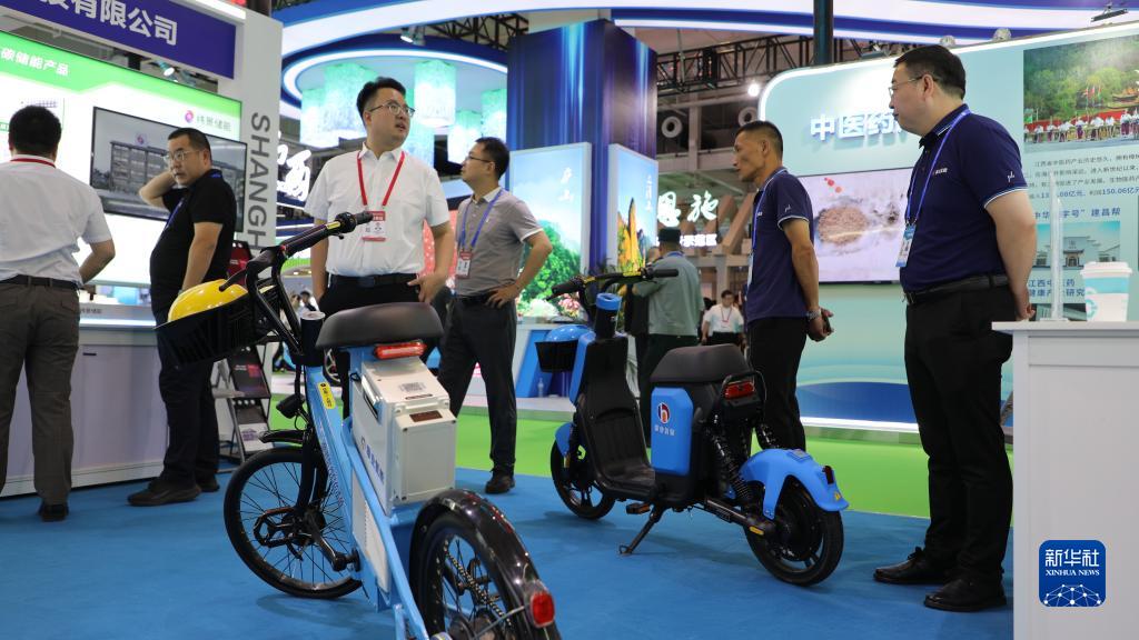 7月6日,在第二十九屆中國蘭州投資貿易洽談會上海市展區,參會者了解展品情況。