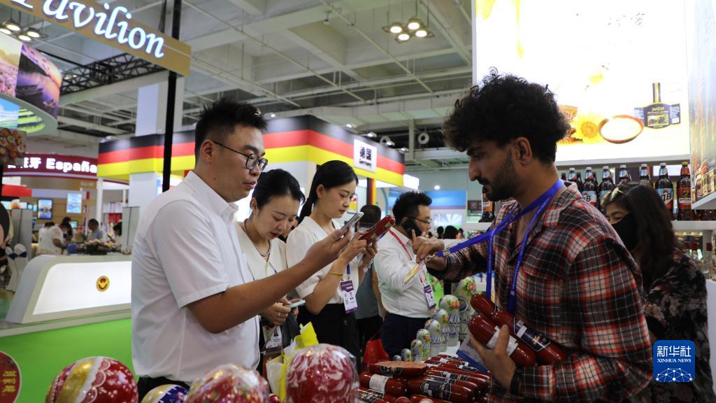7月6日,第二十九屆中國蘭州投資貿易洽談會一家俄羅斯參展商向參會者推介產品。