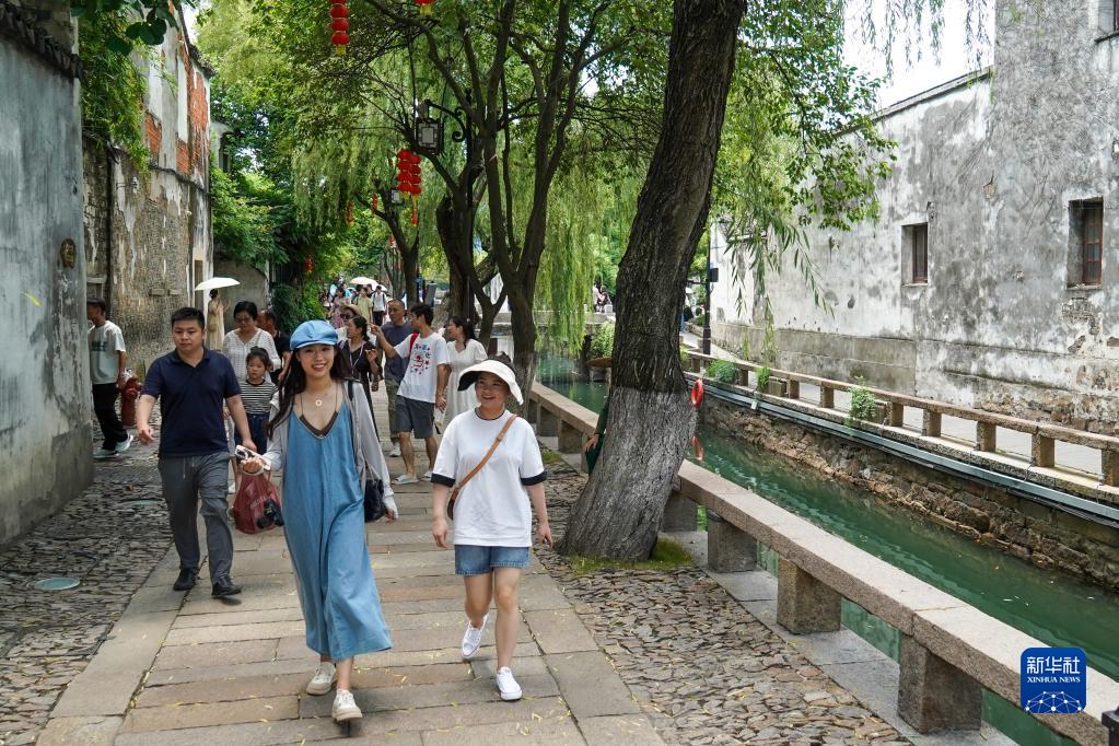 7月6日,游客在蘇州平江歷史街區休閑游玩。