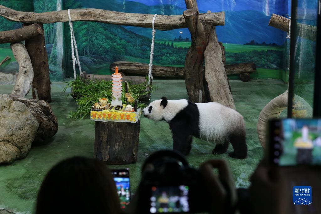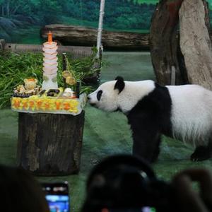 當日,臺北市動物園為大陸贈臺大熊貓“團團”和“圓圓”的女兒“圓仔”慶祝10周歲生日。