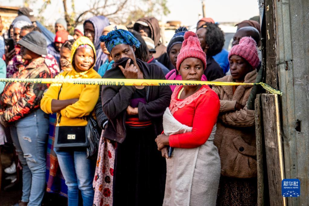 7月6日,人們在南非豪滕省埃庫爾胡萊尼市的事發現場附近圍觀。