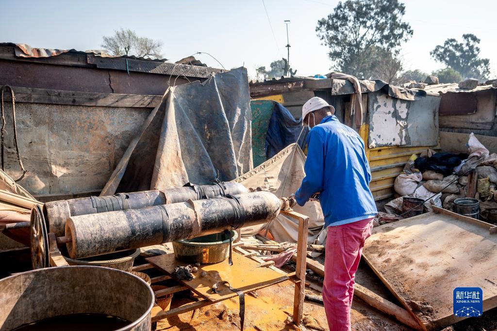 7月6日,一名工作人員在南非豪滕省埃庫爾胡萊尼市的事發現場檢查。