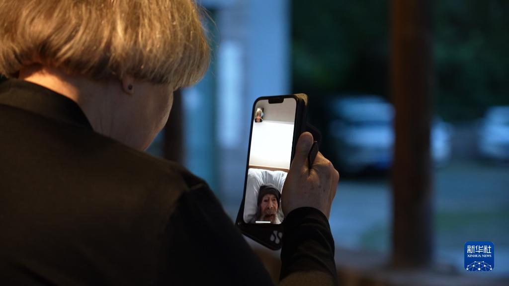 7月2日,在福建省福州市鼓嶺,鼓嶺歷史文化研究者穆言靈(埃琳·麥金尼斯)與103歲的美國老人林恩·柏齡進行視頻連線。