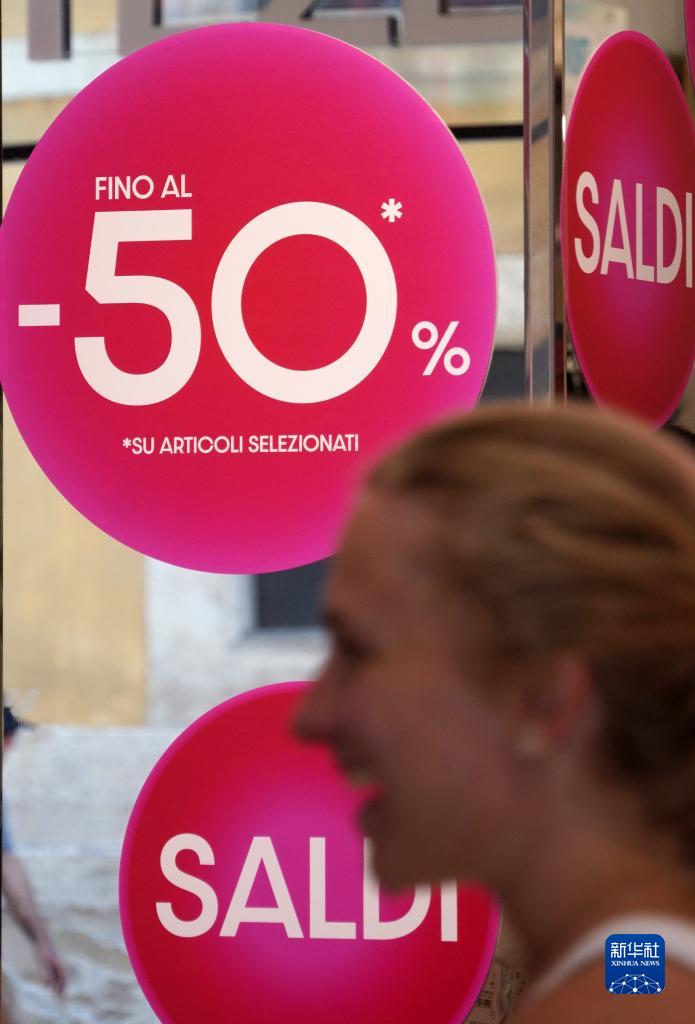 這是7月6日在意大利羅馬拍攝的夏季打折廣告牌。
