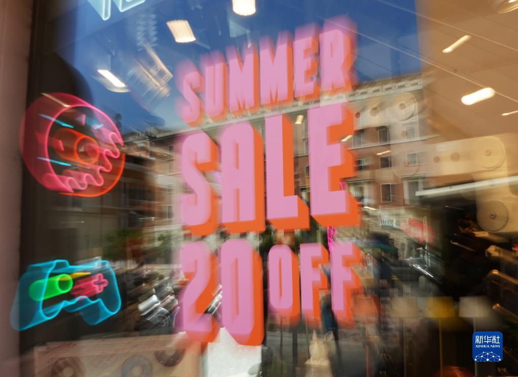 這是7月6日在意大利羅馬拍攝的夏季打折廣告牌。