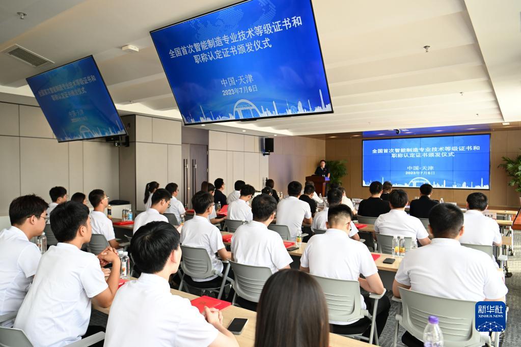 7月6日,天津舉行全國首批智能制造專業技術等級證書頒發儀式。該證書由中國機械工程學會頒發,職業名稱為智能制造工程技術人員,職業方向是智能裝備與產線應用。