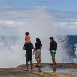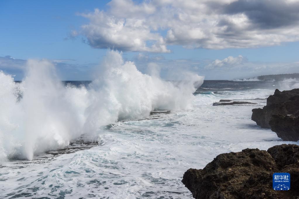 這是7月6日在湯加首都努庫阿洛法的海岸邊拍攝的浪潮。