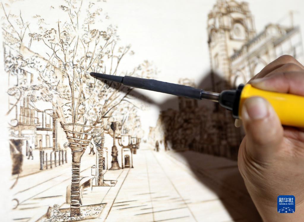 手持電烙筆,在椴木板上利用高溫繪出美麗的畫作,這種作畫形式就是有“火針刺繡”之稱的烙畫。李影是遼寧省營口市李氏烙畫藝術代表性傳承人,她自幼受家庭熏陶學習烙畫技藝,在傳承傳統技藝的基礎上,不斷創新作畫技巧、豐富烙畫表現形式。李影認為,烙畫技藝和其他優秀的傳統手工藝一樣,需要守護傳承,要讓更多的人來接觸、了解烙畫。