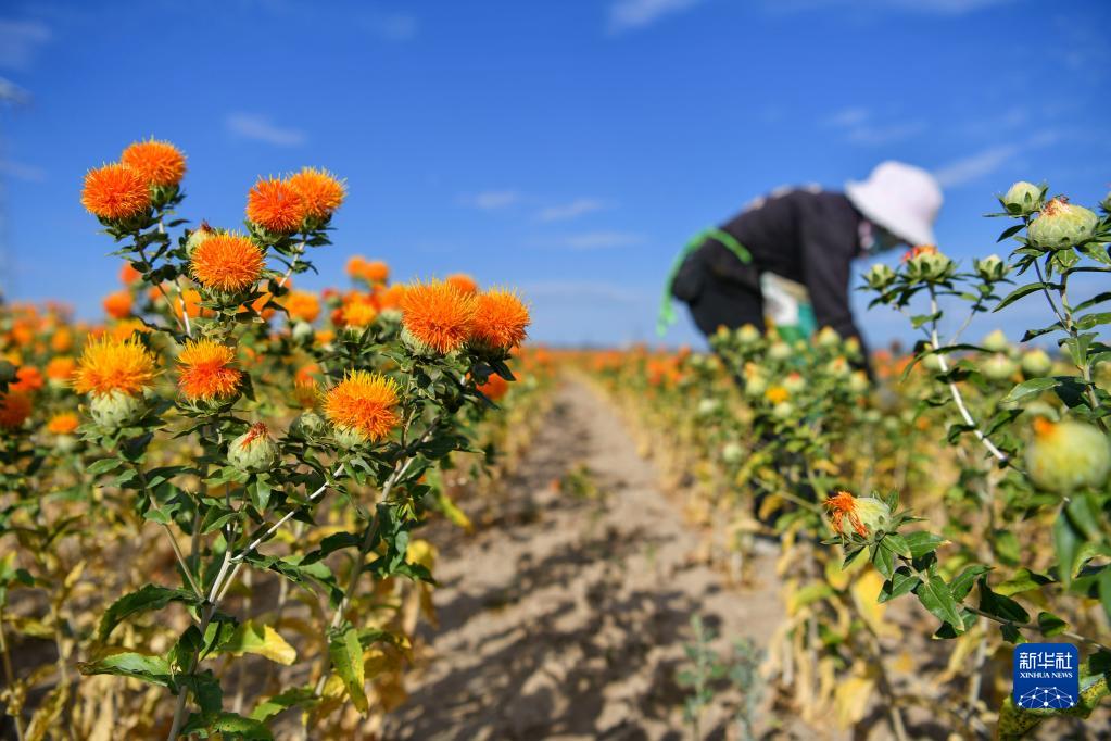 盛夏時節,新疆塔城地區裕民縣15.3萬畝紅花陸續綻放,迎來收獲季。裕民縣是新疆乃至全國主要的紅花產區之一,有著“中國無刺紅花之鄉”的美稱,這里晝夜溫差大、日照時間長,為紅花的種植提供了良好的條件。