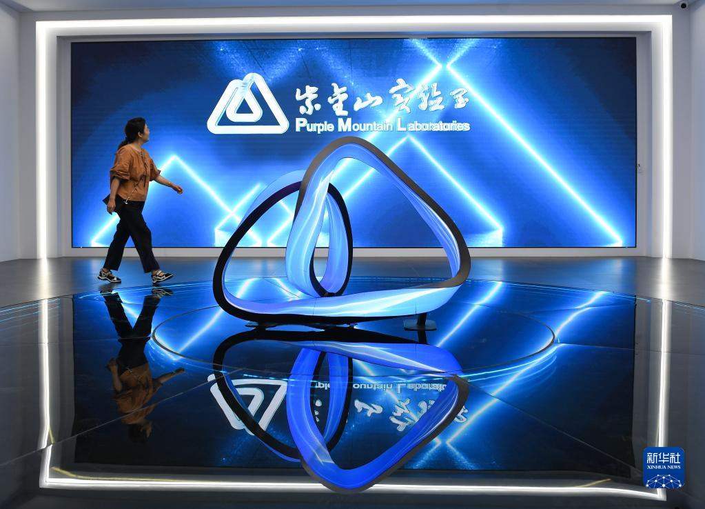7月6日,一名女士經過紫金山實驗室展廳入口。