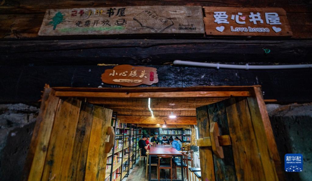 7月5日,秋那桶村的孩子們在“半山花語”書屋參加晚間的讀書活動。新華社記者 江文耀 攝