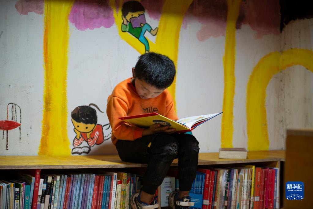 7月5日,在“半山花語”書屋里,秋那桶村的一名小朋友在看書。新華社記者 徐嘉懿 攝