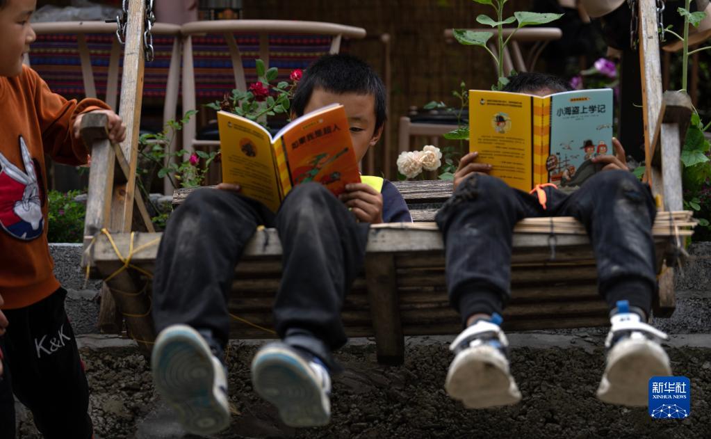 7月5日,小朋友們在“半山花語”書屋看書。新華社記者 費茂華 攝
