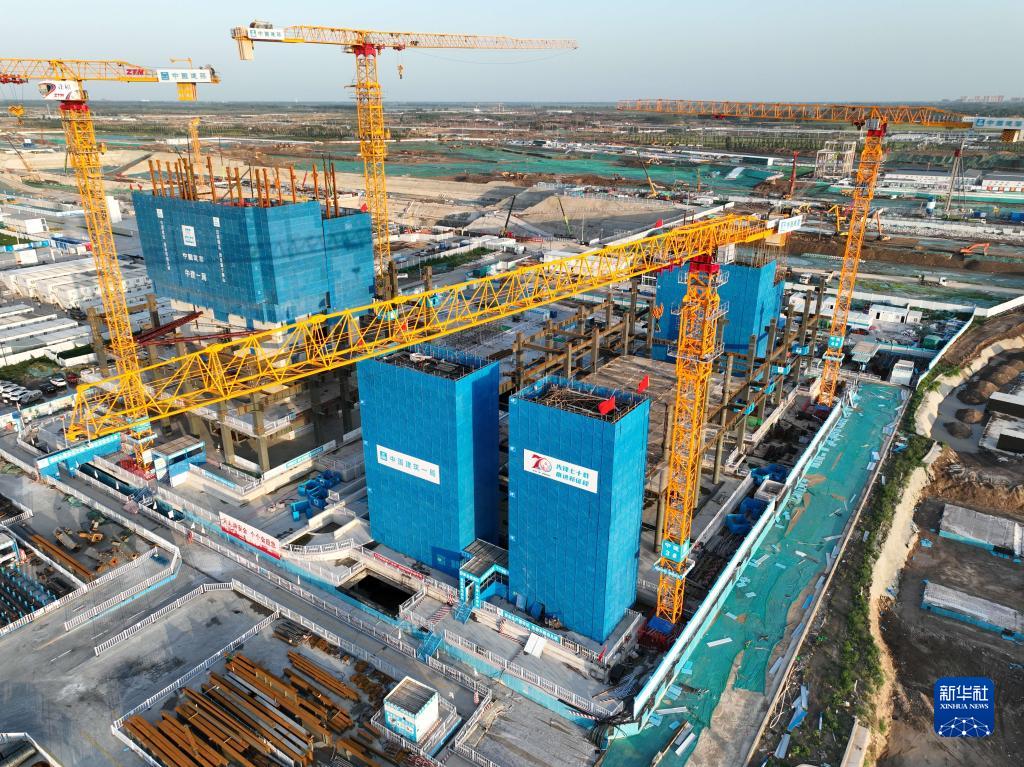 這是位于河北雄安新區啟動區的中國華能總部(7月4日攝,無人機照片)。中國華能總部項目建成后將聚焦服務國家能源安全等重大戰略,積極布局一批聯合創新平臺,助力雄安新區打造國家級的能源電力創新高地。