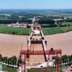 濟濱高鐵濟陽黃河公鐵兩用特大橋全長13.8公里,其中公鐵共建段主橋全長1178米,是濟濱高鐵全線重點控制性工程之一。