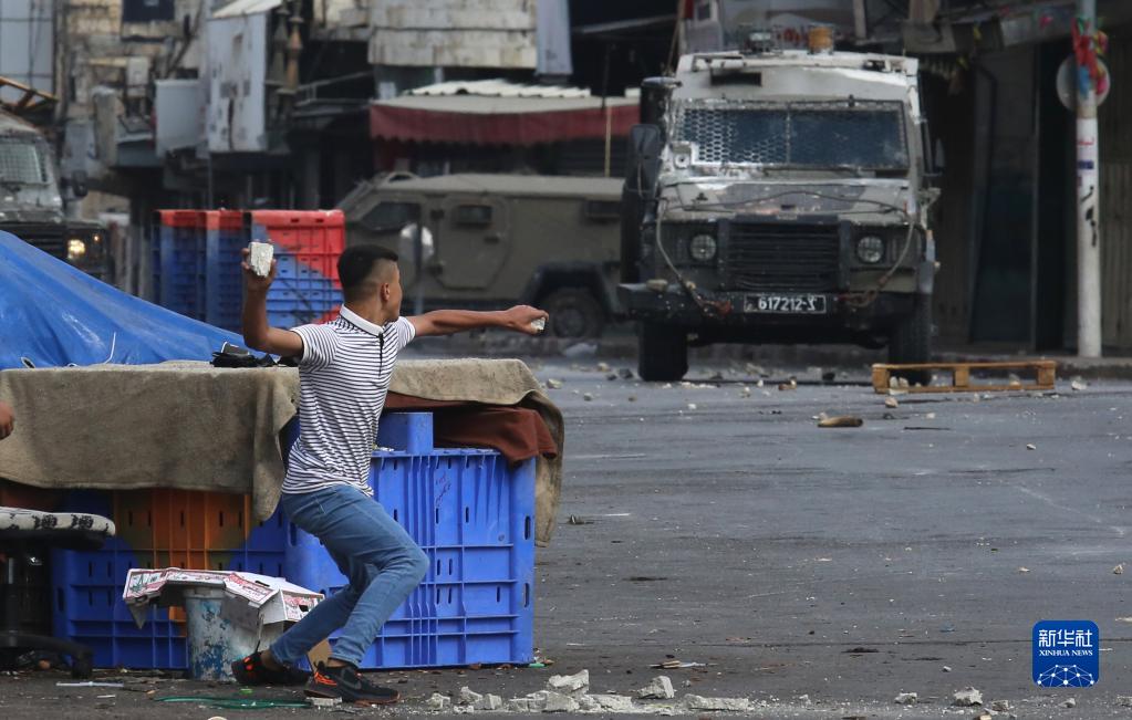 7月7日,抗議者在約旦河西岸城市納布盧斯向以色列軍車投擲石塊。