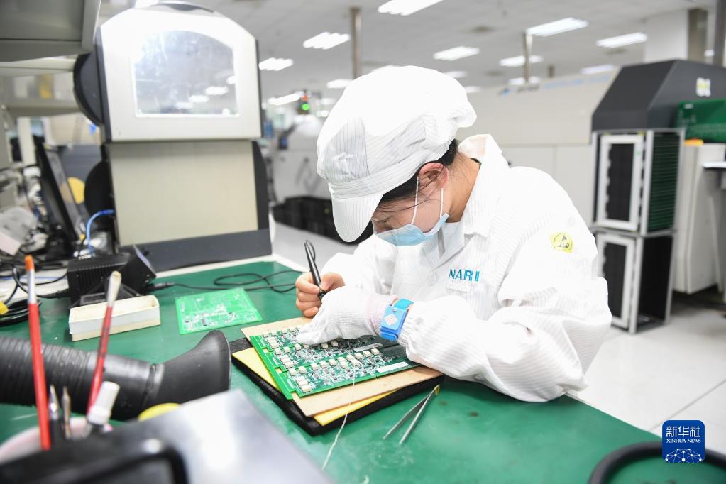 7月7日,在南瑞集團有限公司智能制造生產區,工人維修電路板。
