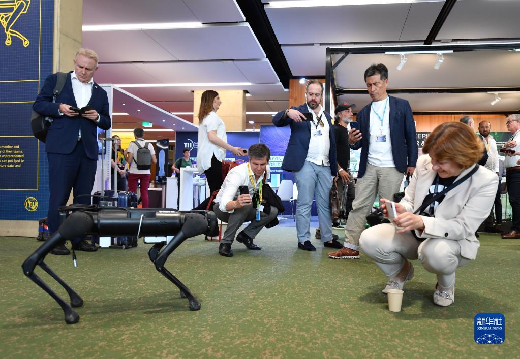 7月7日,在瑞士日內瓦“人工智能造福人類全球峰會”上,參會者觀看機器狗。