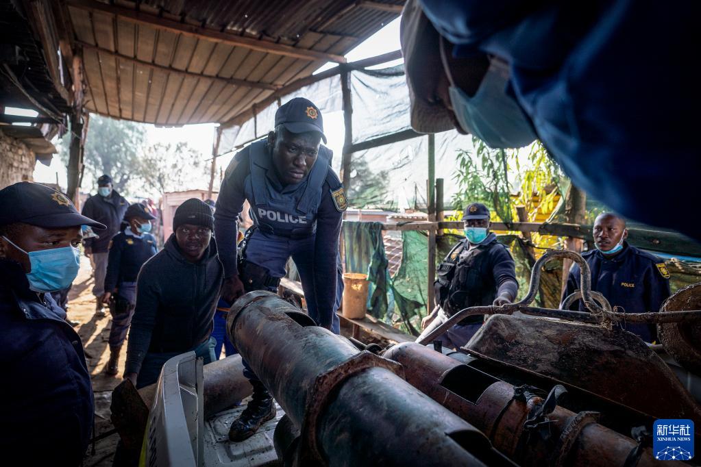 7月6日,警察在南非豪滕省埃庫爾胡萊尼市的事發現場轉移氣罐。