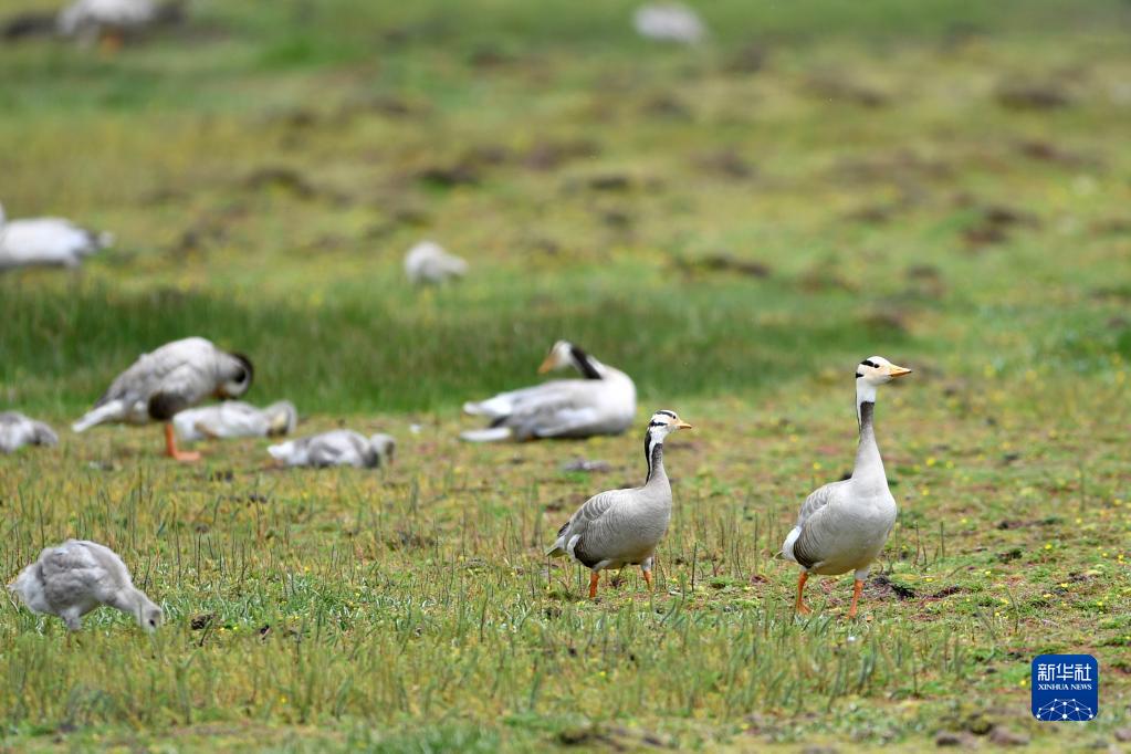 這是在尕海濕地拍攝的斑頭雁(7月7日攝)。