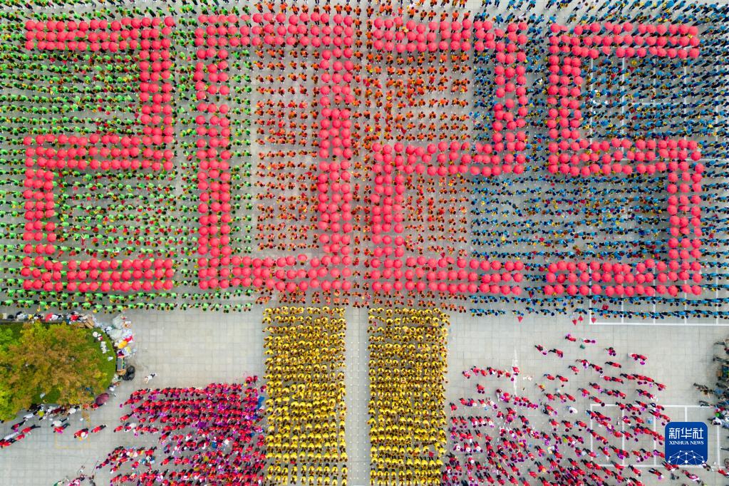 這是7月8日拍攝的在哈爾濱市太陽島景區太陽石廣場舉行的慶祝儀式現場(無人機照片)。