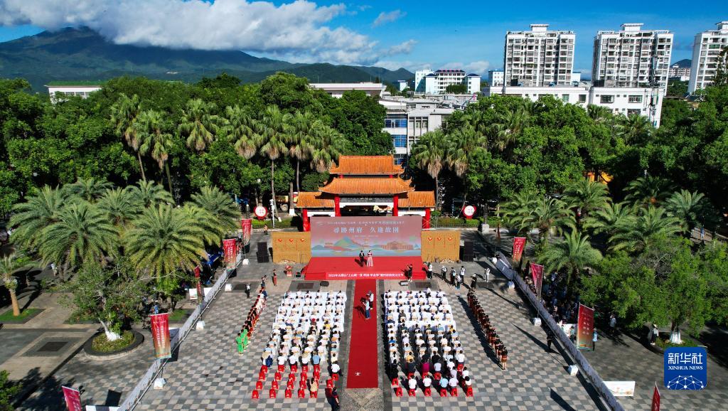 這是7月8日拍攝的五指山“上山爽一夏 故園·畢業季”暨州府故園文化節啟動儀式現場(無人機照片)。