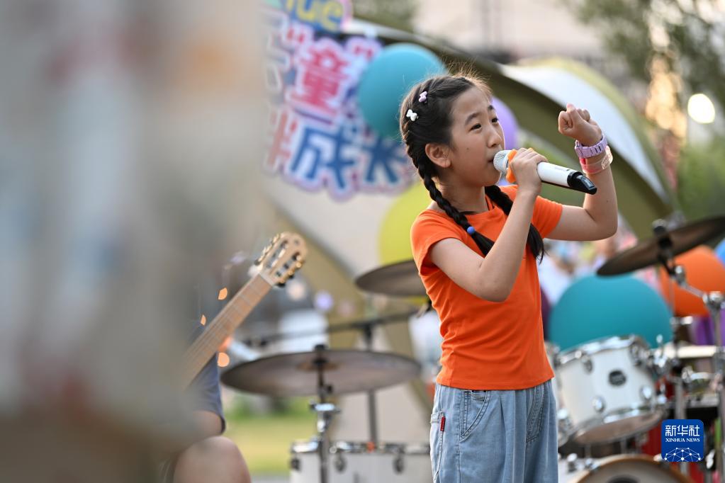 7月8日,小朋友在帳篷音樂會上表演節目。