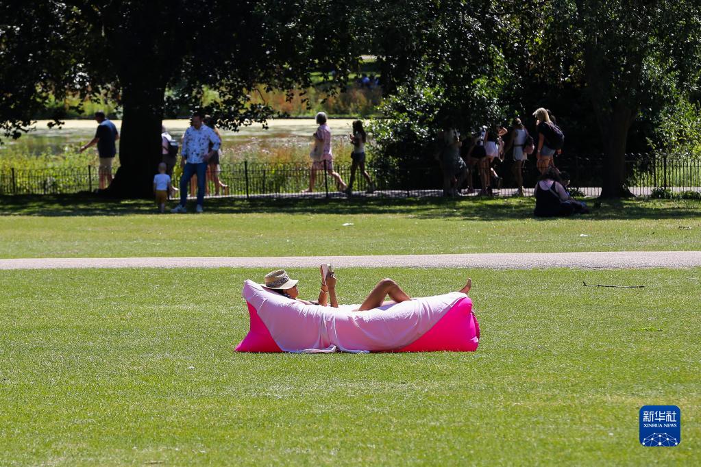 7月7日,一名女子在英國倫敦圣詹姆斯公園沐浴陽光。