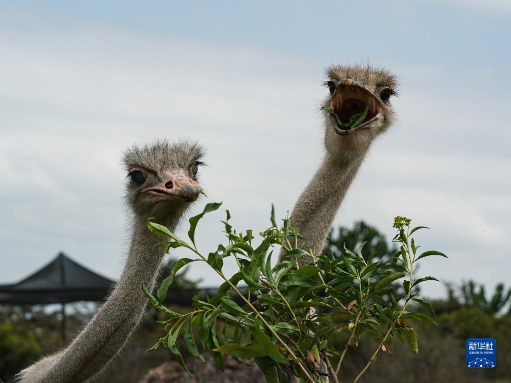 7月8日,鴕鳥在肯尼亞奈瓦沙湖新月島上進食。