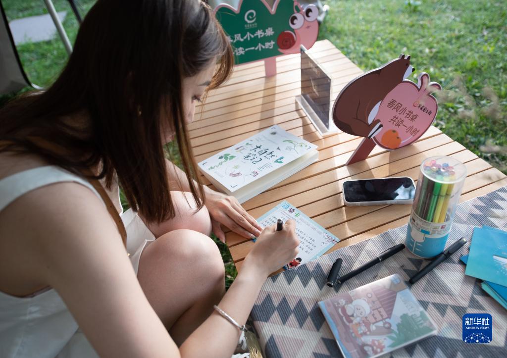 7月8日,在銀川市森林公園,讀者寫下閱讀感想。