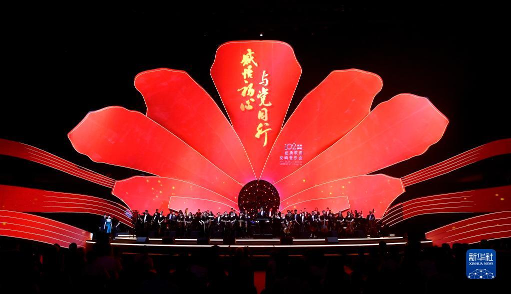7月8日晚,“感悟初心?與黨同行”經典歌曲交響音樂會在西安奧體中心舉行,音樂會分為“致敬?經典”“致敬?山河”“致敬?時代”等多個篇章。