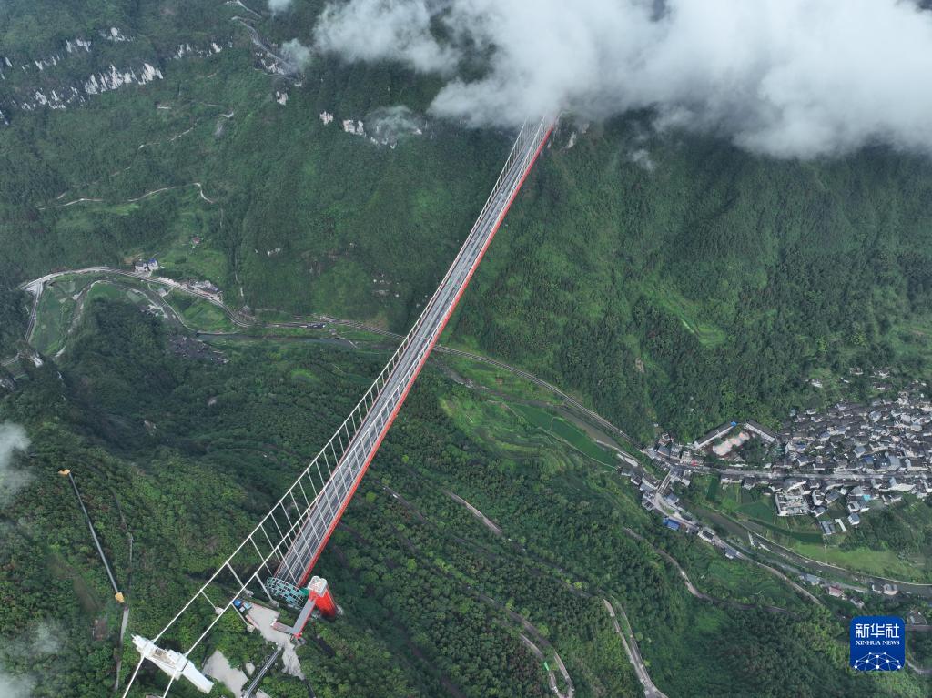 7月8日拍攝的矮寨特大懸索橋(無人機照片)。