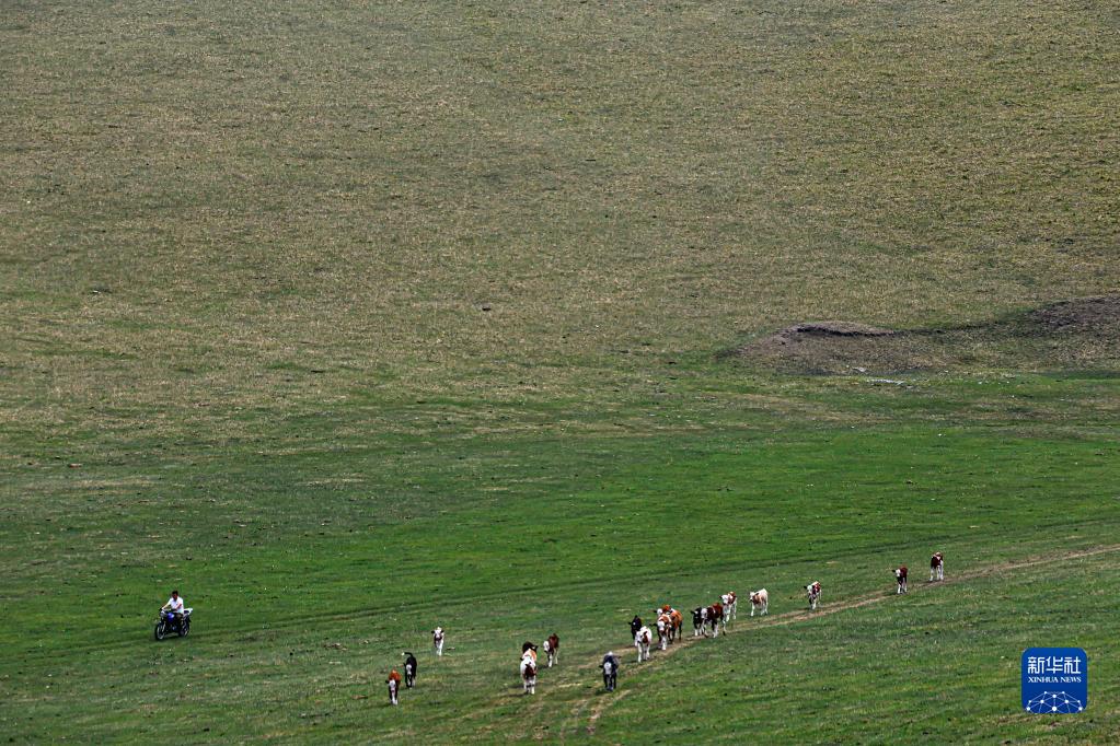 6月27日,巴達瑪斯仁在夏牧場趕牛。