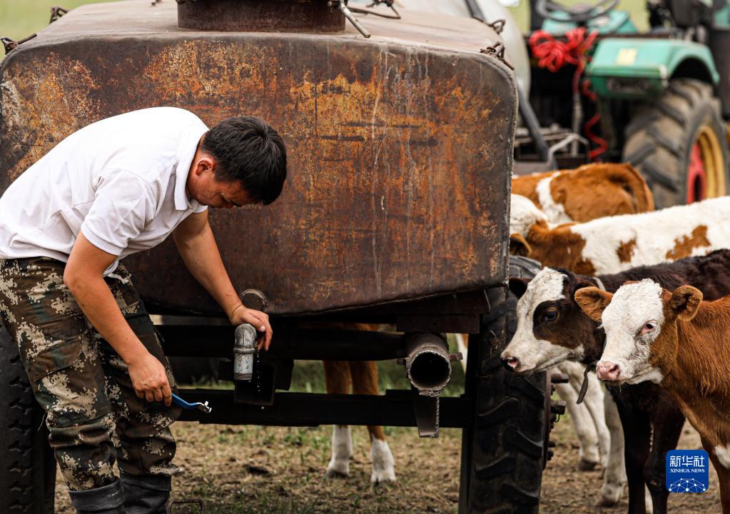 6月27日,巴達瑪斯仁在夏牧場飲牛。