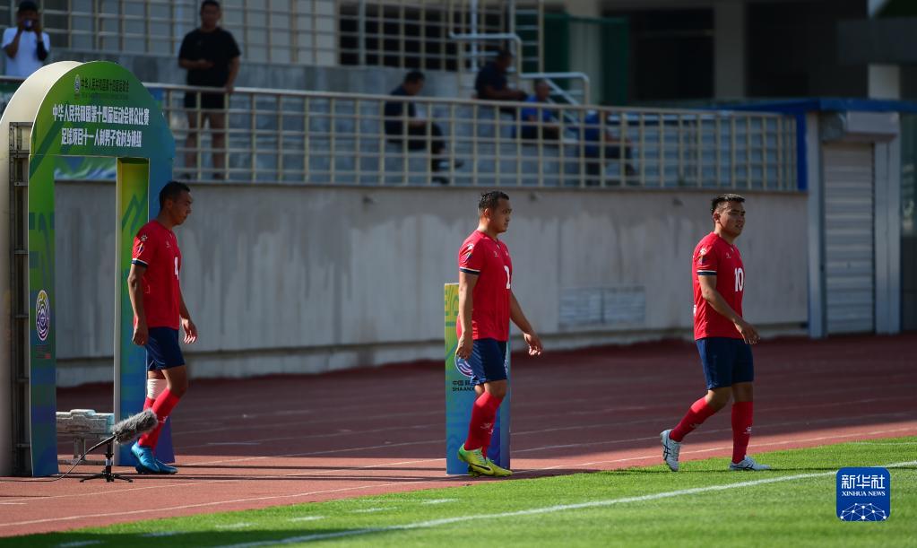 2021年7月20日,巴達瑪斯仁(右一)在第十四屆全國運動會群眾組十一人制足球男子農村鄉鎮組的比賽中上場。