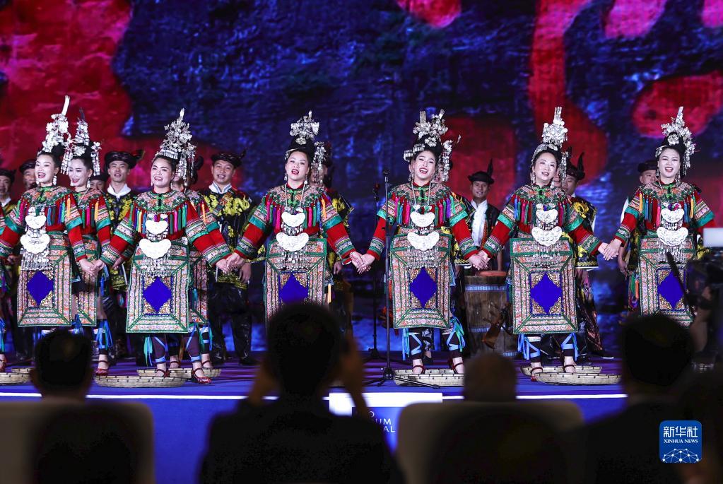 7月9日,演員在2023年生態文明貴陽國際論壇閉幕式上演唱侗族大歌。