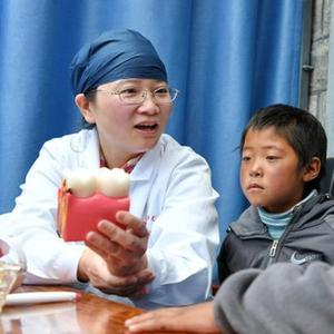 近日,上海市徐匯區牙病防治所的醫務工作者來到西藏浪卡子縣普瑪江塘鄉,為當地居民普及口腔保健知識并進行義診服務。普瑪江塘鄉海拔5373米,是我國海拔最高的鄉。