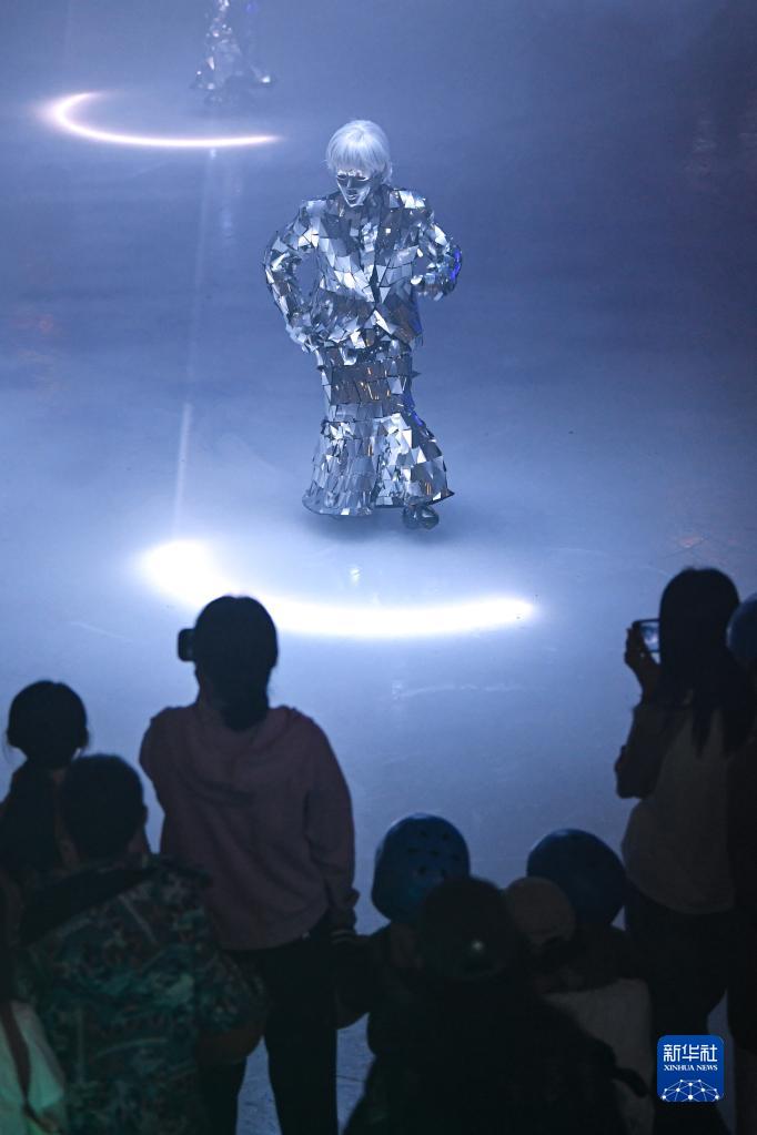 7月8日,游客在新密市銀基國際旅游度假區觀看節目表演。