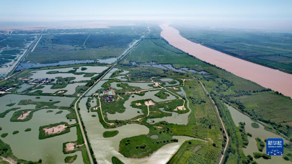 2023年6月30日拍攝的黃河與黃河三角洲濕地(無人機照片)。