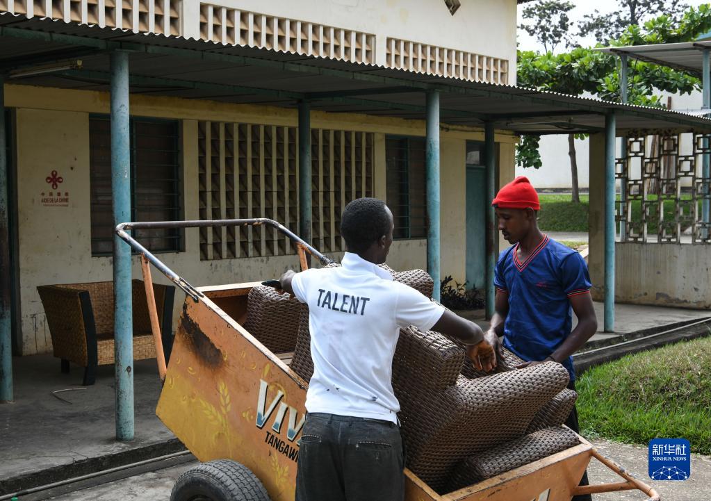 6月21日,在位于布隆迪經濟首都布瓊布拉的卡蒙蓋手工業培訓中心,學員將制作好的竹藤產品裝車。