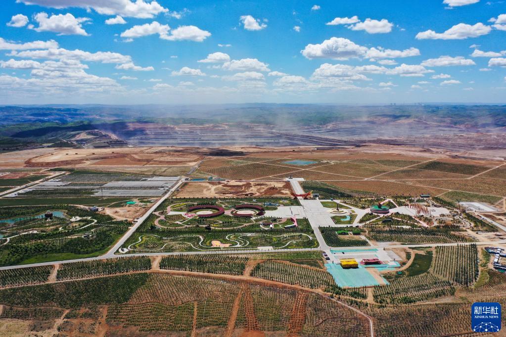 這是位于準格爾旗的國能準能集團對煤礦復墾區進行生態修復后的景象(7月7日攝,無人機照片)。