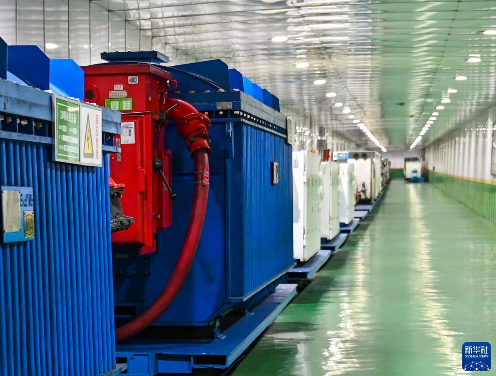 這是7月8日在大唐龍王溝煤礦井下拍攝的電力智能變頻設備。
