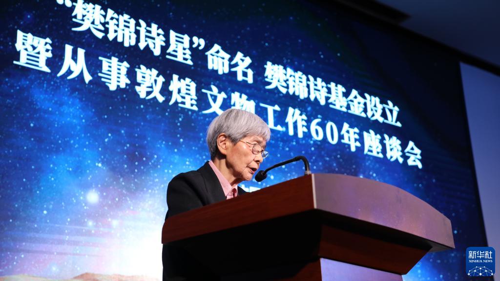 當日,樊錦詩從事敦煌文物工作60年座談會在甘肅省敦煌市舉行。繼捐資1000萬元支持敦煌學研究后,樊錦詩再次捐資1000萬元用于敦煌文物事業和急需人才培養。會上還正式命名國際編號為381323號的小行星為“樊錦詩星”。樊錦詩今年85歲。1963年,她從北京大學歷史系考古專業畢業來到敦煌莫高窟,至今已從事敦煌文物事業60年,現任敦煌研究院名譽院長。