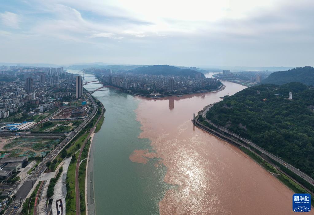這是2022年6月30日在四川省宜賓市拍攝的三江口景色(無人機照片)。