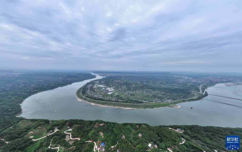 這是6月29日在四川省宜賓市南溪區長江邊拍攝的長江村(無人機照片)。這里的南溪·長江第一灣、長江濕地等水域景觀成為該村發展農旅融合的基礎。