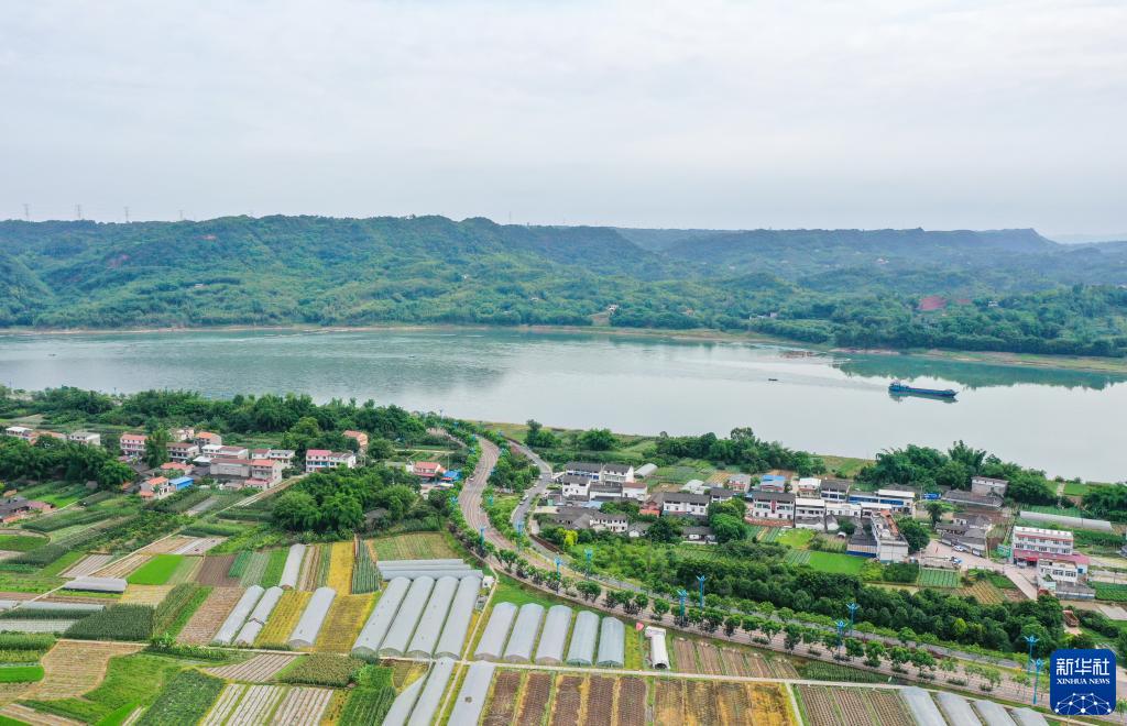 這是6月29日在四川省宜賓市南溪區長江邊拍攝的長江村和“菜稻菜”蔬菜示范基地(無人機照片)。