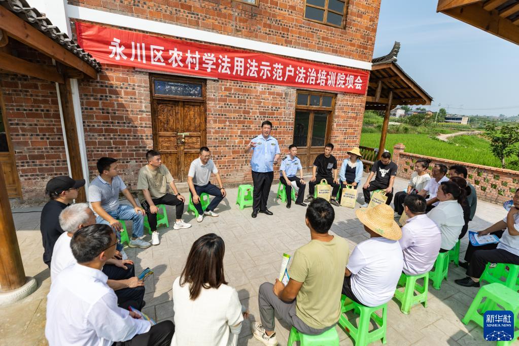 7月10日,在重慶市永川區仙龍鎮雙星村,“小板凳”宣講隊成員為村民宣講涉農相關法律法規。