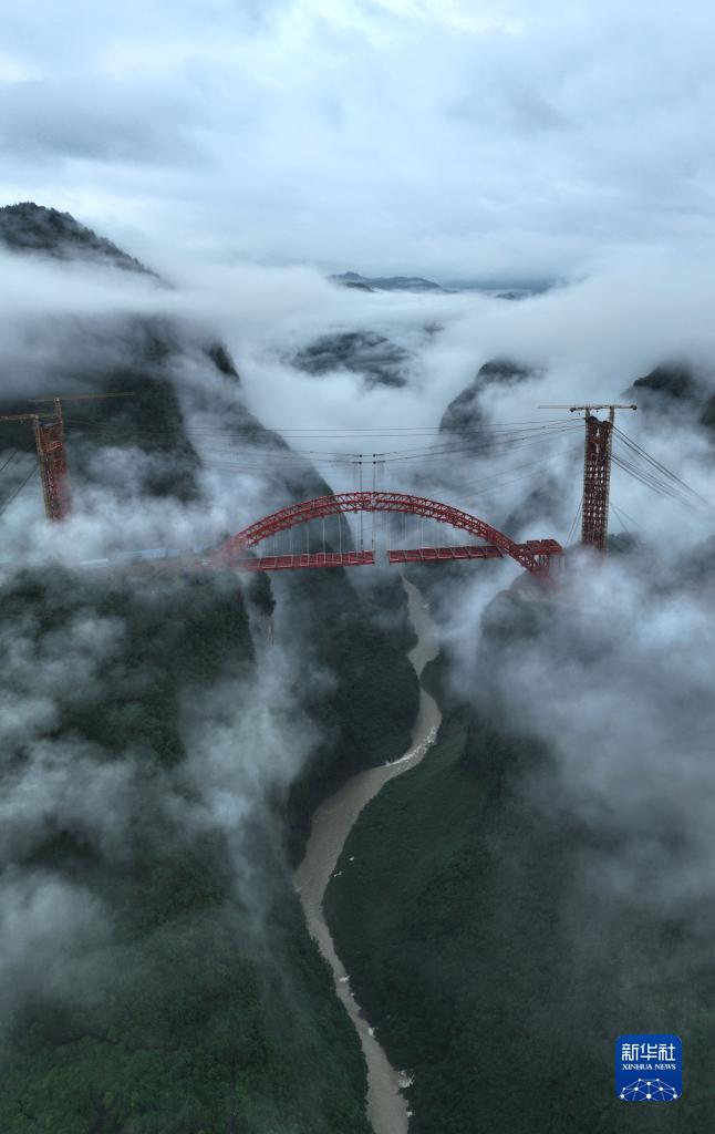 目前,位于湖北省恩施土家族苗族自治州鶴峰縣境內的溇水河特大橋鋼梁吊裝即將完成。溇水河特大橋是宜(都)來(鳳)高速公路鶴峰東段的控制性工程。大橋全長328米,橫跨深度300多米的峽谷。