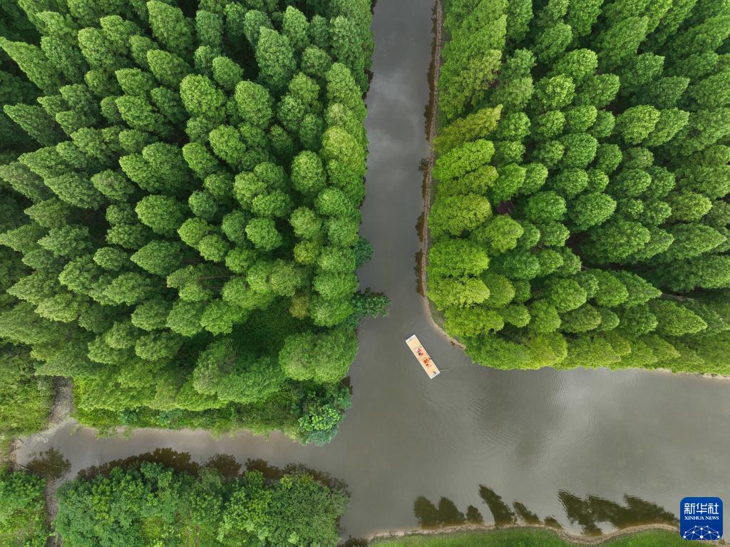 位于江蘇東臺的黃海國家森林公園景色(7月10日攝,無人機照片)。