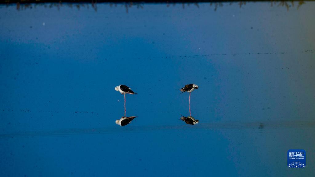 黑翅長腳鷸在東臺條子泥濕地休憩(2023年6月15日攝)。